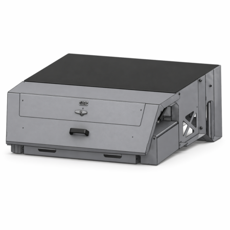 Ford Police Interceptor Utility Electronics Mounting Cargo Deck with Lidded Storage Compartment, Removable Tray, Weapon Drawer with Push-Button Lock w/Key Override and Lockable Electronics Tray