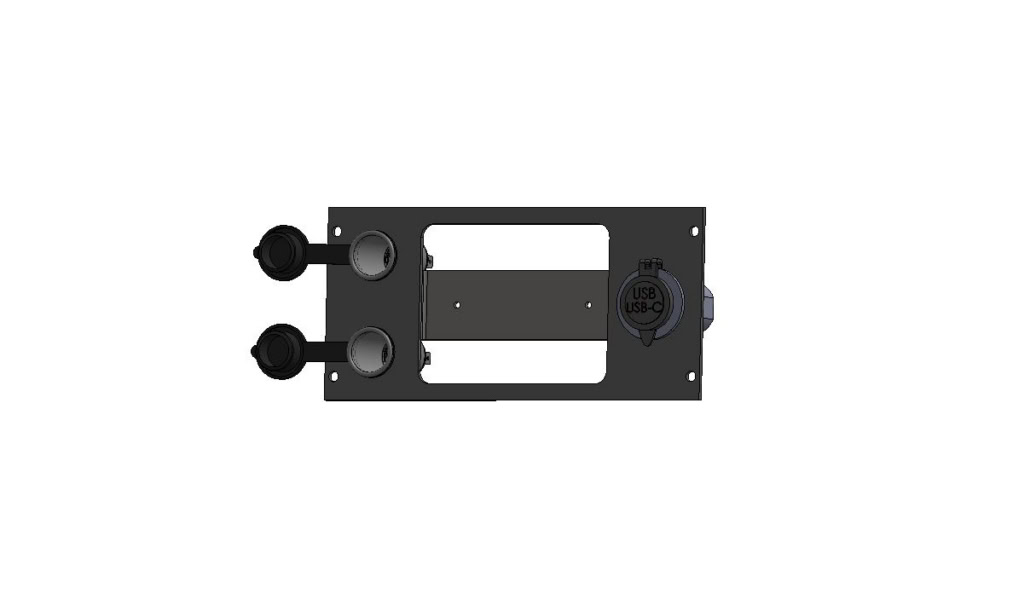 Troy Products equipment faceplate uses 4″ of mounting space. Material made from 12 gauge cold rolled steel and black fine texture powder coat finish for durability. Faceplate includes two (2) DC Outlets and one (1) combo USB-C/ USB. Designed and engineered for the perfect fit. Proudly manufactured in the USA.