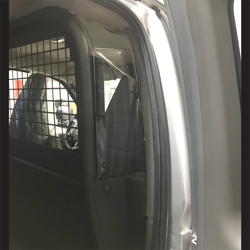 Troy Products Chevrolet Express Van partition mounting kit is side-curtain airbag compatible. Designed to allow 100% seat slide with some seat-back recline. Made with robust material to protect from sharp objects and to keep hands from reaching through to the front of the vehicle. The upper-side panels are made from .25” thick polycarbonate material. The mount design is rigid with a tight fit against the B-pillar but flexes enough during deployment for the bag to fully drop. No holes drilled design makes installation quick and easy resulting in labor savings! Proudly manufactured in the USA.