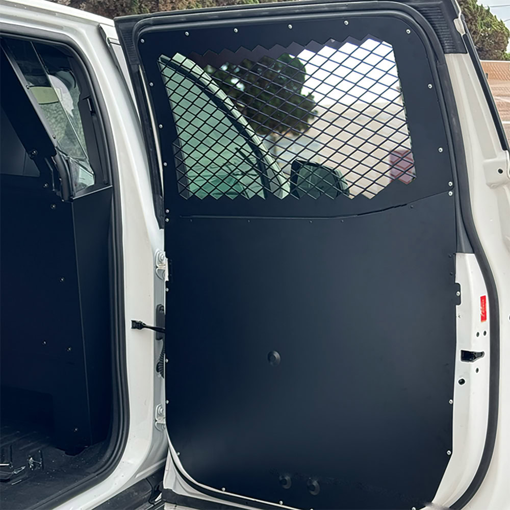 Troy Products Chevrolet Silverado EV steel door panels. Replaces factory door panels, secures passenger-door handle and locks to provide a secure prisoner transport area. All welded construction made of steel and powder coat finished for years of even the most rugged service. Designed and engineered for the perfect fit. Proudly manufactured in the USA.