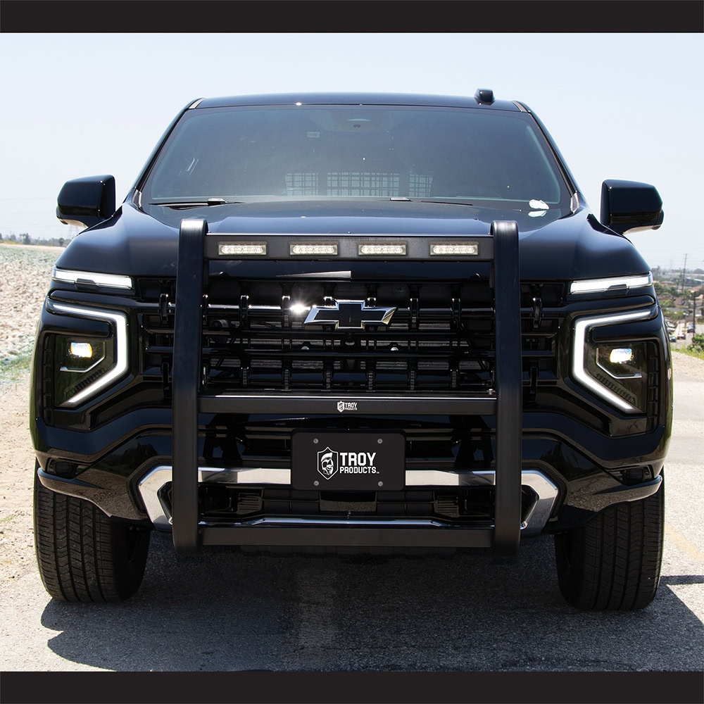 Troy Products Chevrolet Tahoe Push Bumper is expertly engineered for each vehicle make and model delivering unmatched coverage, durability and visibility. Light channel is pre-drilled to accommodate all light models. Push Bumpers seamlessly combine aesthetic and functionality to meet the rigorous demands of contemporary police and public safety vehicles. Installation is a breeze with our no-drilling design, utilizing existing OEM holes and slots for rapid set-up. Designed and engineered for the perfect fit. Proudly manufactured in the USA.