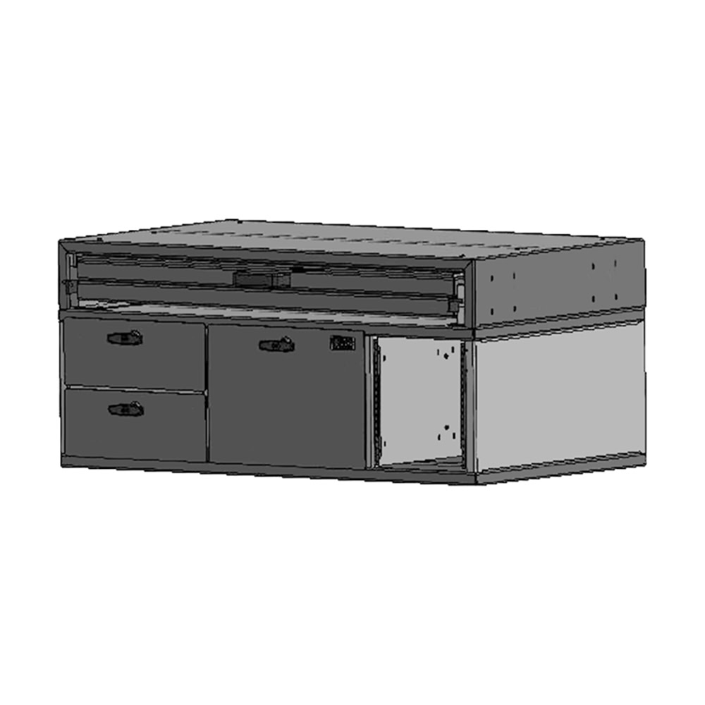 • A full-size map drawer includes polycarbonate lids for storing drawings/prints underneath, modular includes lock-out slides have tabbed ends for convenient access • This command post represents the mid-sized variant of CP-2SU95-FS1
