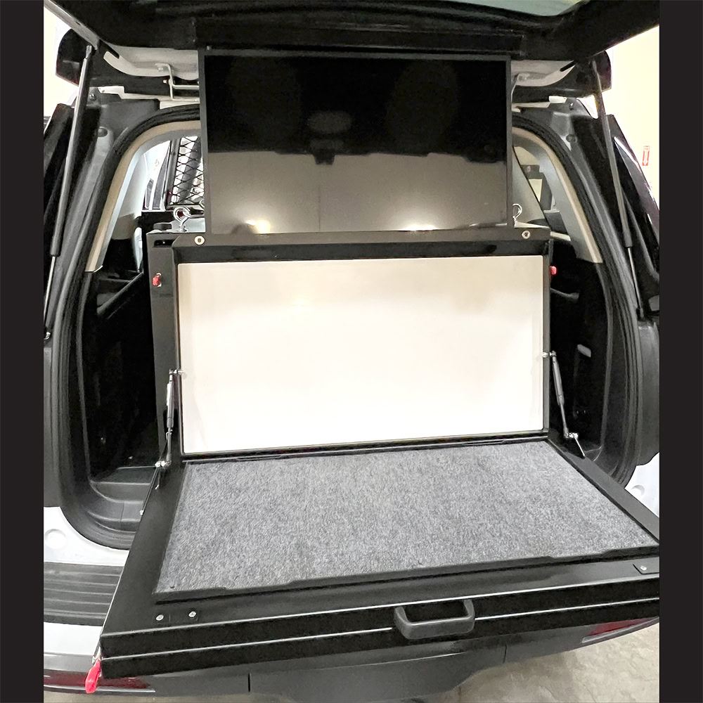 Troy Products drone command post is a great storage solution. Pop-up whiteboard equipped with two lock out slides. Gas shocks hold the unit upright in the most advantageous working position to provide a sturdy writing surface. Includes 1” foam in drone drawer, push button lock and two (2) draw-tight locking handles. Command post top drawer accommodates a Samsung 32” TV. Elevate your fleet with this rugged Troy TV Drone command post! Designed and engineered for the perfect fit. Proudly manufactured in the USA.