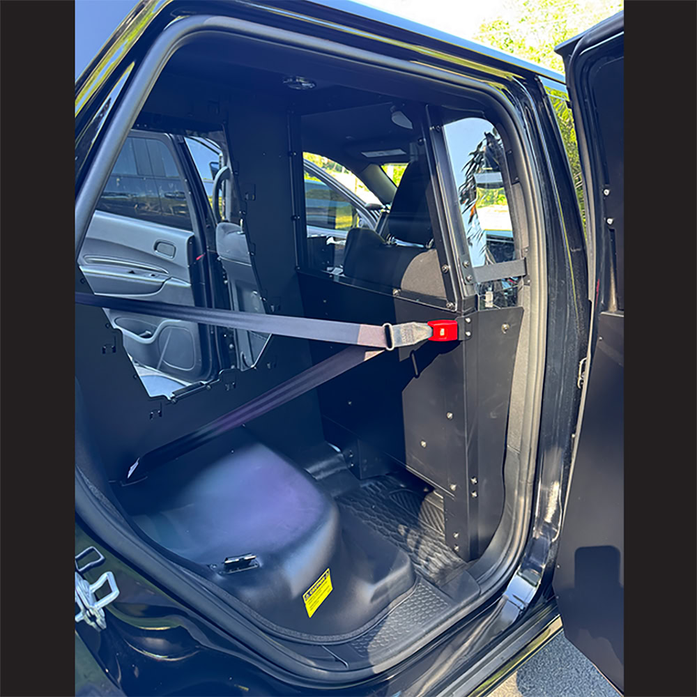 • Three-piece system features a passenger-side half partition, plastic seat made from sturdy proprietary polymer blend material and coated with odor-resistant microbial coatings, and polycarbonate rear partition with square hole punch side panels (optional compartments available)