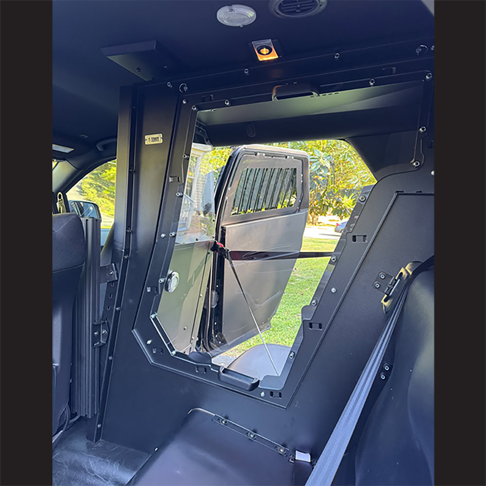 Troy Products Dodge Durango Single Cell Transportation Systems designed utilizing 3D scan data, our Troy team successfully created a single cell unit that installs with Troy precision and is recognized as the most ruggedly built unit available. Constructed using the highest quality military grade alloy steel as well as aerospace grade polycarbonate to provide a safe and secure environment for officers and detainees. Designed and engineered for the perfect fit. Proudly manufactured in the USA.