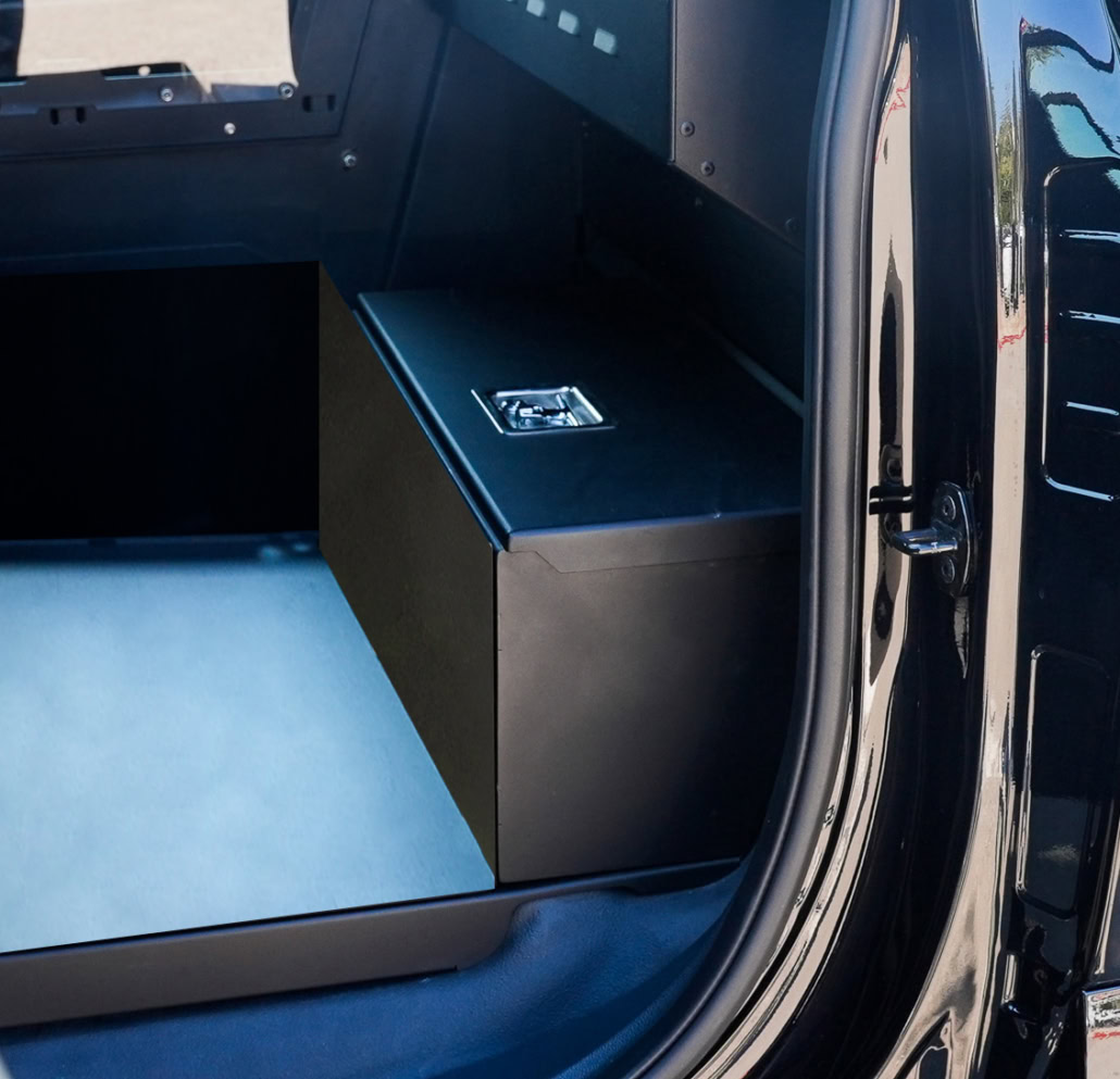 Troy Products Ford F150 | Silverado 1500 Single Cell Driver Side Lidded Box is designed to mount to floor plate EM-21F1-2032-2ROW (sold separately). Includes one gas spring to ensure the lid opens to the appropriate height to avoid contact into the electronics cover mounted to the rear partition. Storage box is triangular in shape for a perfect fit in the rear of the cab. Material is strong and long-lasting, fully welded construction for years of longevity. Black fine texture powder coat finish for durability. No holes drilled design makes installation quick and easy! Designed and engineered for the perfect fit. Proudly manufactured in the USA.