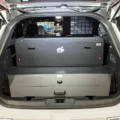 Troy Products Ford Police Interceptor Utility electronics mounting cargo deck with lidded storage system featuring an ergonomically friendly design that offers the most versatile storage options on the market. All components are made from military-grade alloy steel. The cargo deck includes a lockable compartment with an aluminum divider for storage. Divider storage sides feature driver and passenger side flare boxes and rubber mat on top for extra grip. Top drawer is equipped with a push button lock with key override and can be used to safely secure weapons and valuable items. Bottom drawer with heavy-duty lock out slides can be used to mount expensive electronic components. Cargo deck also a rubber mat on top of the unit. The entire system is fastened to OEM mounting holes and conforms to the shape of the vehicle for an attractive, simple installation.