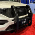 Troy Products Ford Police Interceptor Utility Push Bumper is expertly engineered for each vehicle make and model delivering unmatched coverage, durability and visibility. Light channel is pre-drilled to accommodate all light models. Push Bumpers seamlessly combine aesthetic and functionality to meet the rigorous demands of contemporary police and public safety vehicles. Installation is a breeze with our no-drilling design, utilizing existing OEM holes and slots for rapid set-up. Designed and engineered for the perfect fit. Proudly manufactured in the USA.