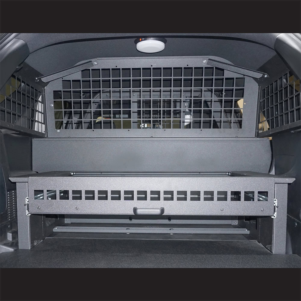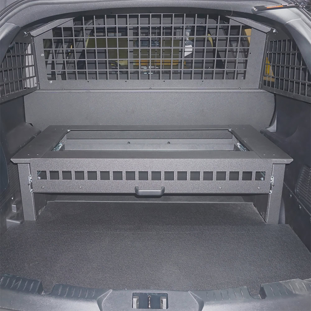 Troy Products offers an elevated storage-vault mount specifically for Ford PI Utility vehicles. Its all-steel construction ensures a robust, rattle-free elevated platform for a TROY storage vault. The mount bolts directly into OEM holes, allowing for a hassle-free installation without the need for cutting or drilling, and it is compatible with various TROY storage vaults. An optional electronics tray can be easily attached to the mount, providing a secure space for essential electronic components. The elevated design facilitates easy access to the spare tire. It has been designed and engineered for an optimal fit. Proudly manufactured in the USA.