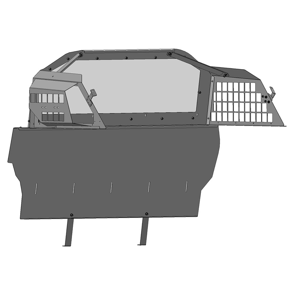 The Troy Products cargo partition for the Ford Police Interceptor Utility is engineered to secure the SUV cargo area while offering features not commonly available in comparable rear partition systems. This three-sided partition features a polycarbonate upper panel with fire extinguisher compartment on the driver side and square punch panel on passenger side. Rear partition is compatible with Troy Products storage vaults, and for full cargo-area security, the hatch window screen AC-20-UV-HATCH can be added. The no-drill installation design reduces installation time and labor costs, while all-welded steel construction with a durable powder-coat finish provides long-term performance in demanding service environments. Designed for precise vehicle fitment and proudly manufactured in the USA.