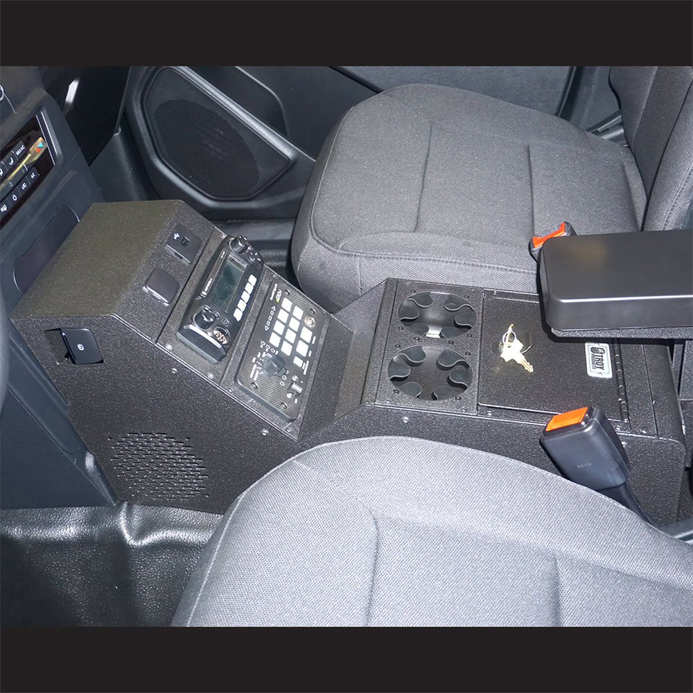 Troy Products Ford Police Interceptor-specific console features several important elements aimed at enhancing comfort and safety. It allows for the easy relocation of the OEM USB/DC Outlet components for user convenience and includes one (1) dual USB Waytek port. There is ample space to accommodate the most popular console accessories and equipment, providing 18″ of faceplate mounting area. An adjustable harness cover, part number AC-UV20-HC, is included with the console, but only if the vehicle is equipped with the OEM wire harness cover. The console is designed to mount directly to OEM anchor points, ensuring a no-cutting, no-drilling installation, and it fits against the dash while concealing unsightly gaps on the floor, delivering a professional original equipment appearance. Constructed with all-welded steel and finished with a powder coat, the replaceable faceplate rails guarantee a fully functional console that will endure even the most demanding service for years. It has been designed and engineered for a perfect fit. Proudly manufactured in the USA.