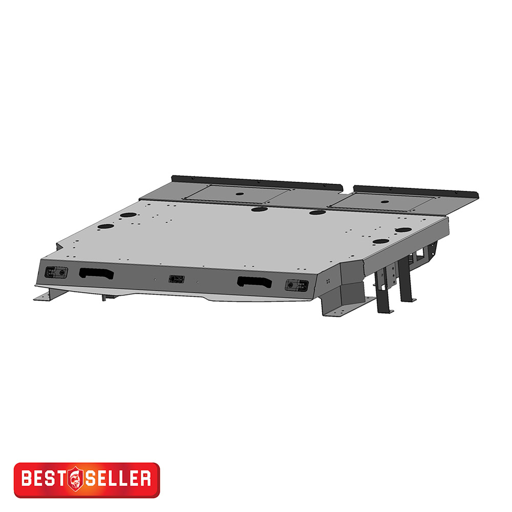 Troy Products offers a Ford PI Utility tilt-up steel cargo mount. This product replaces the factory plastic floor and delivers a robust foundation for mounting storage vaults or command posts. The cargo mount is designed to bolt directly to OEM holes, ensuring a straightforward installation process. It features multiple punched mounting holes that facilitate the installation of various TROY command posts and storage vaults. The mount tilts up with the help of dual gas shocks, providing easy access to the spare tire. To enhance this innovative design, consider adding a TROY tilt-down electronics tray, which creates a safe, ventilated, and secure space for mounting valuable mission-critical electronic components. The level cargo mount floor is compatible with TROY rear partitions and is designed and engineered for an optimal fit. Proudly manufactured in the USA.