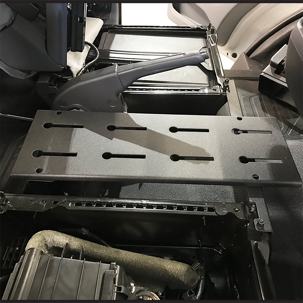 Troy Products Ford Transit Van console floor mounting plate. Provides a solid mounting platform to assure a sturdy, wobble-free console installation. Works with standard and wide size consoles. Designed and engineered for the perfect fit. Proudly manufactured in the USA.