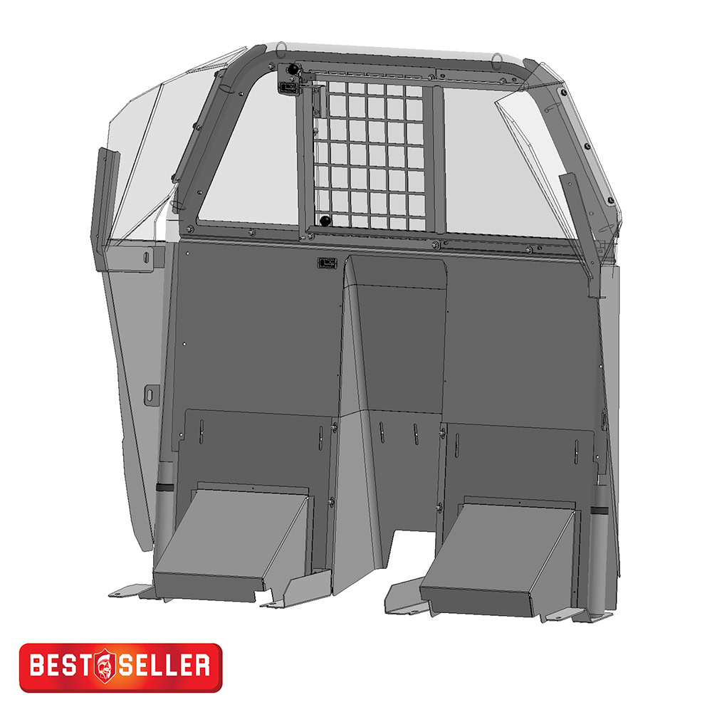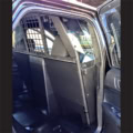 Troy Products Ford Police Interceptor Utility | Explorer Civilian universal sedan front partition kit is designed with a large sliding window for increased driver visibility and view of detainee. Includes center square-hole punched pattern window bolted in place to prevent it from being kicked out with a crawl-through prevention screen. Patented recessed center for accommodating vertical mounting weapons between seats. The upper-side panels are made from .25” thick polycarbonate material. The front partition includes 100% driver-side seat slide for maximum leg room, side-curtain airbag compliance, rigid upper-wing panels designed to prevent access to officers, full tubular partition framing for added strength and integrity. 3-piece lower kick panel extension assembly designed to completely cover the gap between partition bottom and vehicle floor for a snug fit while optimizing back-seat foot room. Lower extension panel easily bolts to the front partition. Prevents access from underneath partition keeping possessions out of reach of the detainee. No holes drilled design makes installation quick and easy resulting in labor savings! All welded construction made of steel, powder coat finish for years of even the most rugged service. Designed and engineered for perfect fit. Proudly manufactured in the USA.