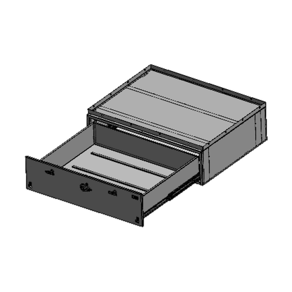 Troy Products heavy-duty single-drawer storage vault with heavy-duty ball-bearing slides. Exterior dimensions of 44″ W x 32″ L x 12″ H. Includes 1.5″ lip, carpet on top of box, carpet on drawer walls and floor, two (2) draw-tight locking handles and push button lock with key override. Drawer is equipped with lock out slides. Organize and secure valuable cargo gear in this rugged Troy vault! Designed and engineered for the perfect fit. Proudly manufactured in the USA.
