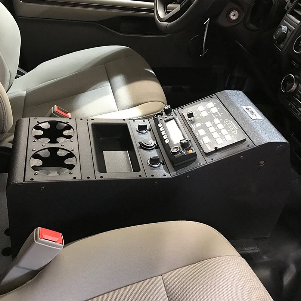 Troy Products universal sloped console. 7″ of sloped faceplate area to mount mission-critical electronics forward and high to ensure a good line-of-sight on the important control heads. 11″ of level faceplate area provides ample space for console accessories such as; a cup holder, storage tray or additional outlets. Safety, comfort and functionality. Designed and engineered for the perfect fit. Proudly manufactured in the USA.