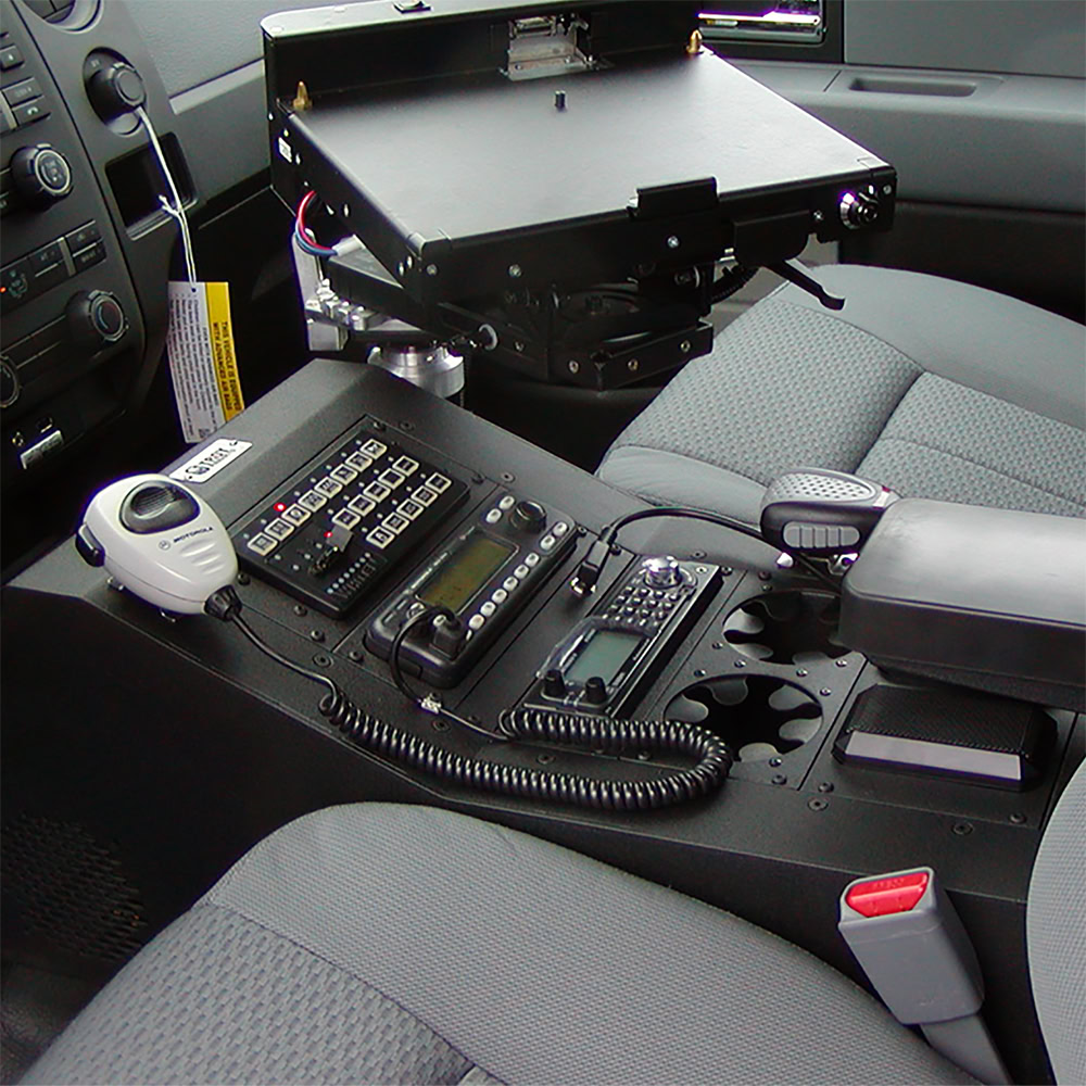 Troy Products universal wide-body sloped console. 8″ of sloped faceplate area to mount mission-critical electronics forward and high to ensure a good line-of-sight on the important control heads. 12″ of level faceplate area provides ample space for console accessories such as; cup holders, storage trays, additional outlets and more. Wide body design helps fill up space between the seats on large trucks and SUVs. Safety, comfort and functionality. Designed and engineered for the perfect fit. Proudly manufactured in the USA.