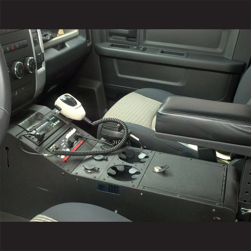 Troy Products universal sloped console. 7″ of sloped faceplate area to mount mission-critical electronics forward and high to ensure a good line-of-sight on the important control heads. 15″ of level faceplate area provides ample space for console accessories such as; a cup holder, storage tray or additional outlets. Safety, comfort and functionality. Designed and engineered for the perfect fit. Proudly manufactured in the USA.