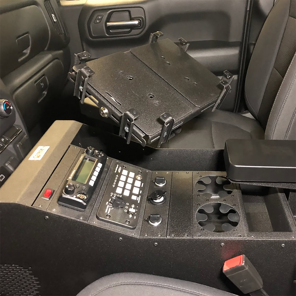 Troy Products offers a universal wide-body with an open storage console designed for trucks. The console features an 8″ sloped faceplate area, allowing for the installation of essential electronics at a forward and elevated position to maintain a clear line of sight on critical control heads. Additionally, there is 17″ of flat faceplate area that provides generous space for console accessories, including cup holders, storage trays, extra outlets, and more. Features an open storage on the passenger side for added storage capacity. This console design integrates safety, comfort, and functionality. It is designed and engineered to ensure a perfect fit. Proudly manufactured in the USA.
