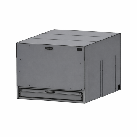 Eco Line Aluminum Storage Box, 31″ W x 30″ L x 13″ H, Three Drawers and Internal Compartments, Driver Side Open Compartment.
