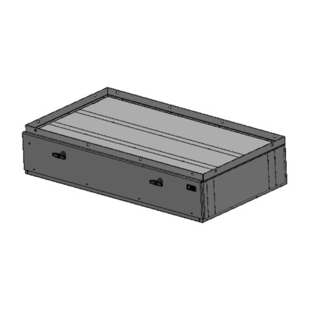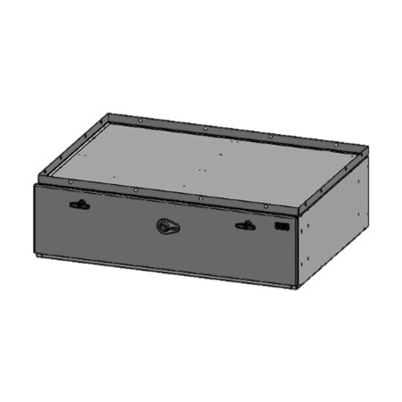 Storage Vault, 48″ W x 22″ L x 6.5″ H with two draw-tight locking handles and push-button lock