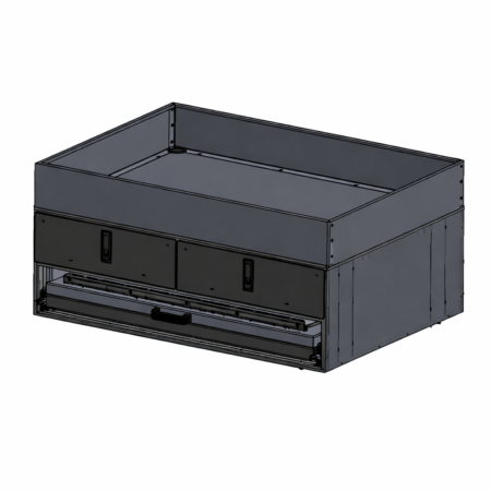 Command Post, 44″ W x 22″ L x 12″ H; Computer Slide-Out Tray, Two (2) Stacked Storage Drawers with Draw-tight Locking Handles and 10″ of Face Plate Mounting Space