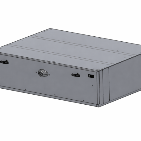 Storage Vault, 44″ W x 34″ L x 12″ H Single Drawer with Two (2) Draw Latch Handles, Push Button Lock with Key Override, Carpet Inside Drawer Walls and Floor, Lock Out Slides, Carpet Top and 1.5″ Lip